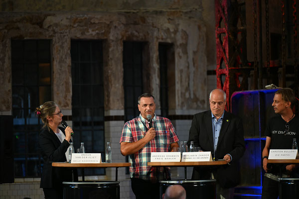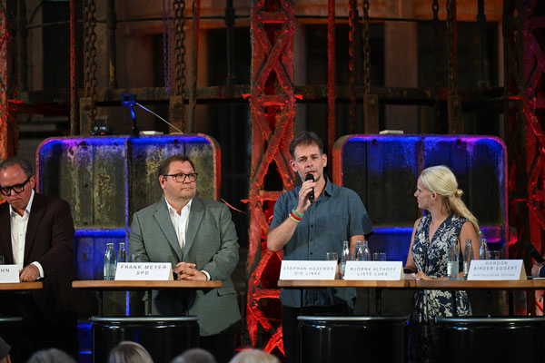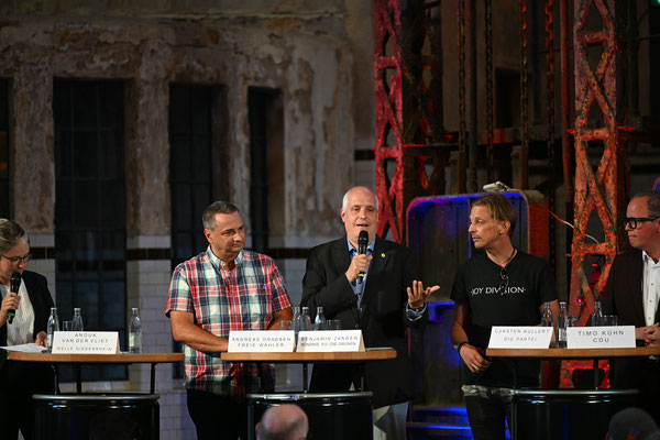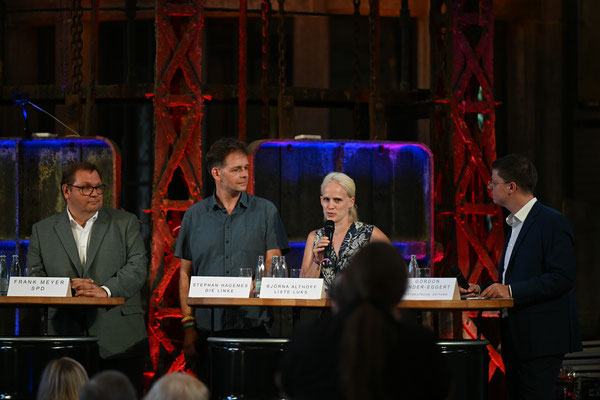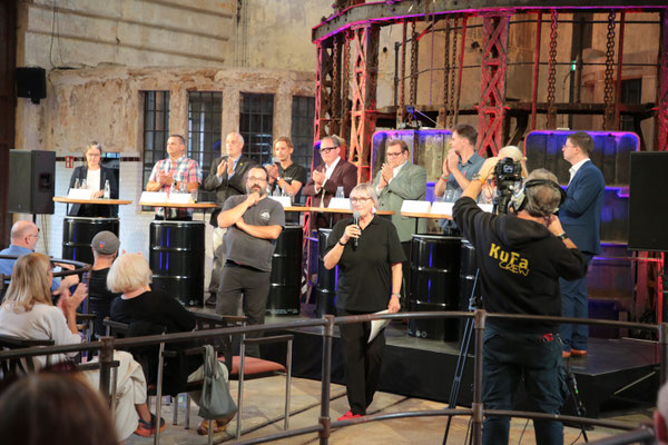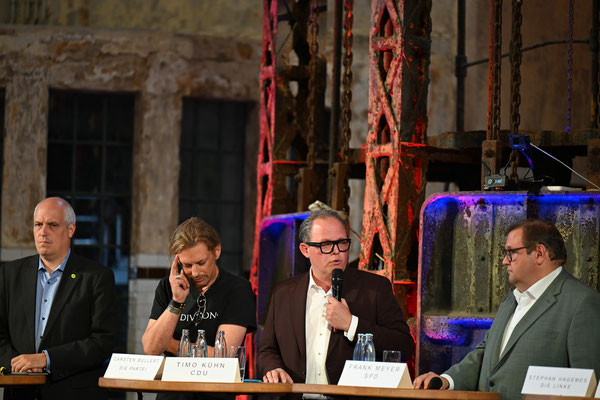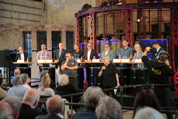 Fotoimpressionen von der Podiumsdiskussion am 20.08.2025 im historischen Klärwerk Uerdingen.